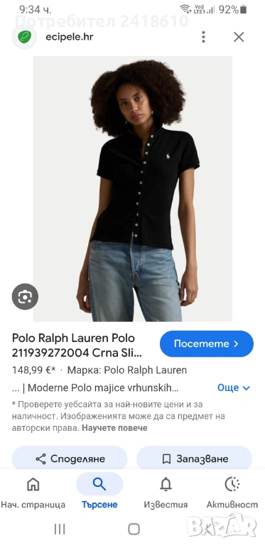 Ralph Lauren Pique Cotton Stretch Womens Size / S НОВО! ОРИГИНАЛ! Дамска Тениска!