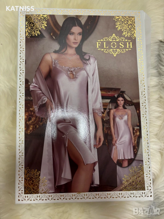 Копринена нощница със халат , снимка 1 - Бельо - 53424201 1/1