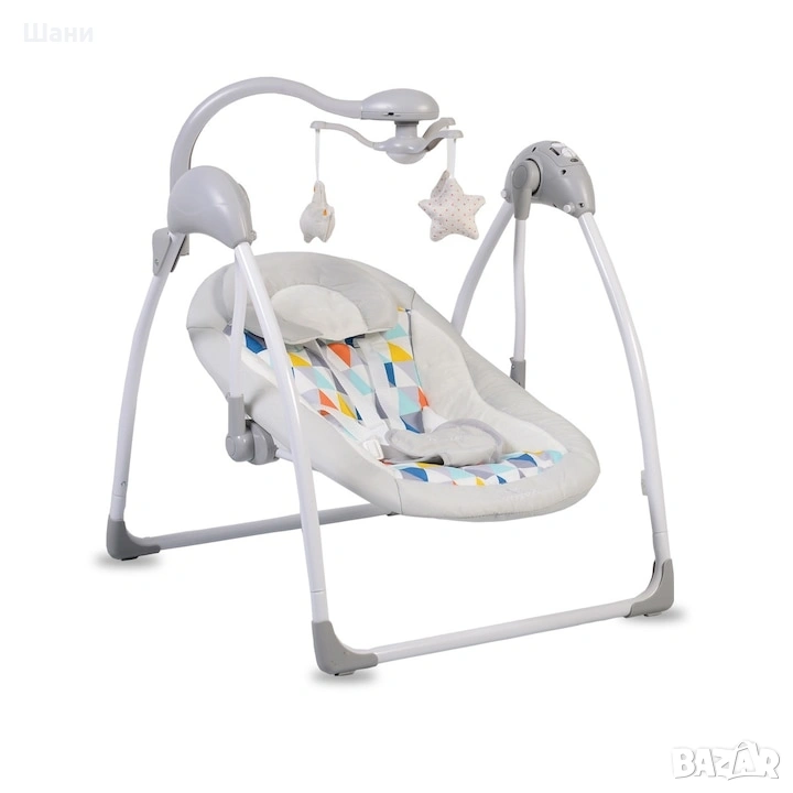 Електрическата люлка е подходяща за деца на възраст приблизително до 6 месеца и с тегло до 9 кг. Люлката има: електрически гриф с 3 играчки за визуална стимулация на бебето и дистанционно управление; 5-степени на люлеене, обозначени със светещи индикатори; 3 настройки на времетраенето на люлеене - 8, 15 и 30 минути; 12 нежни мелодии и 5 звука от природата Седалката има две позиции - легнала за почивка и полуизправена за игра. Детската люлка работи с адаптер или с батерии