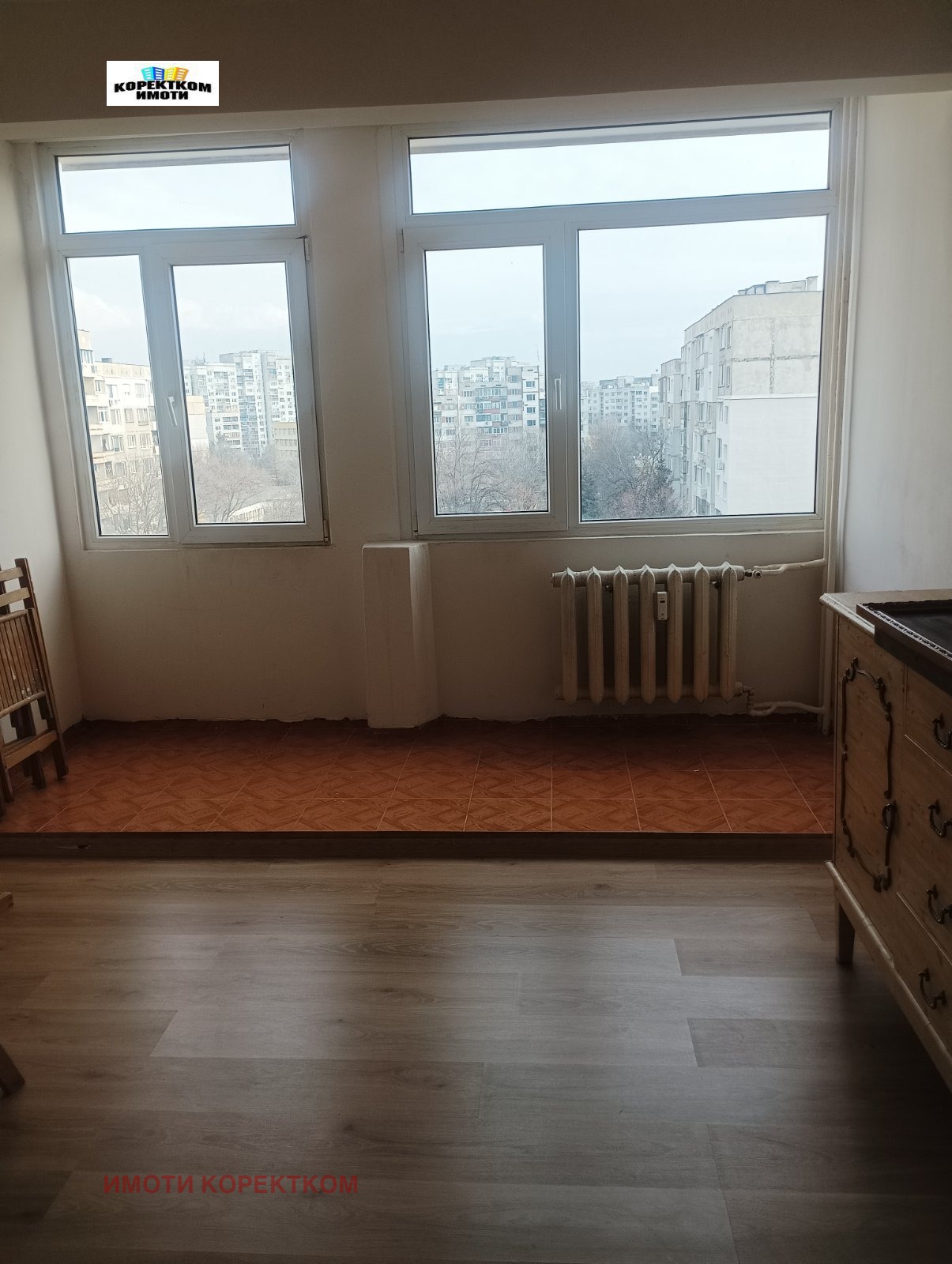 Малко жилище състоящо се само от една стая, баня с тоал. и коридор. В момента в жилището има само един скрин в стаята, а в коридора малък хладилник и печка. Предлага се в този вид за 300 евро, има и възможност да се закупят и мебели за стаята - легло и гардероб, както и пералня. В случай че е обзаведено цената на наема е 360 евро. Сградата е до Кауфланд, удобна локация...