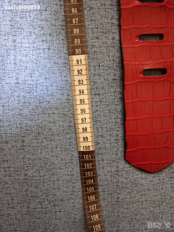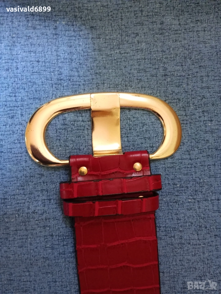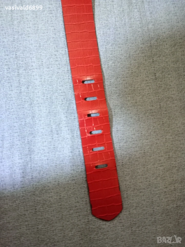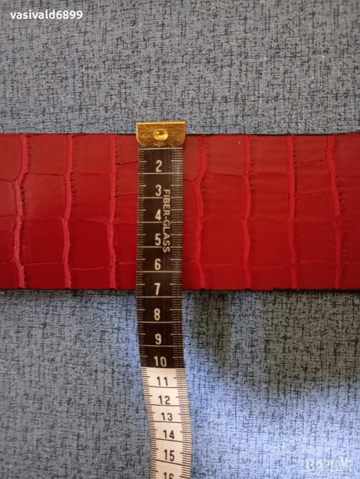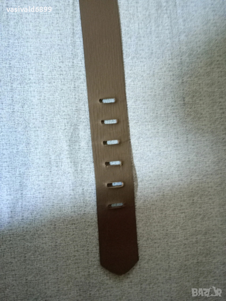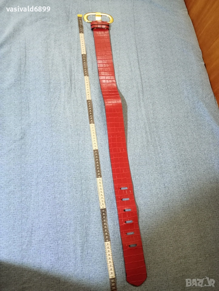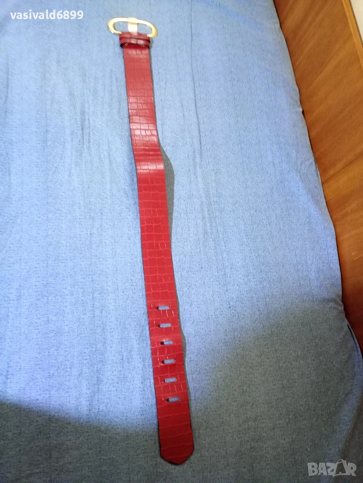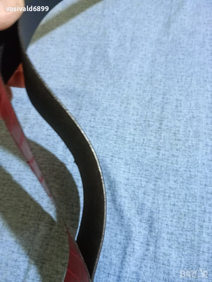 Дамски колан от изкуствена кожа. Размерите са показани на снимките. На последните снимки са показани разлепвания на пластовете кожа, вероятно от некачествено залепване при производството му. Цена: 0,55 EUR.