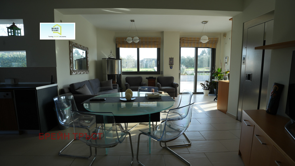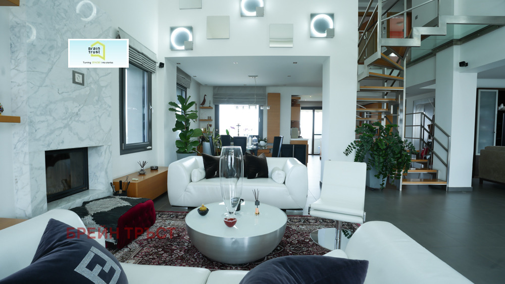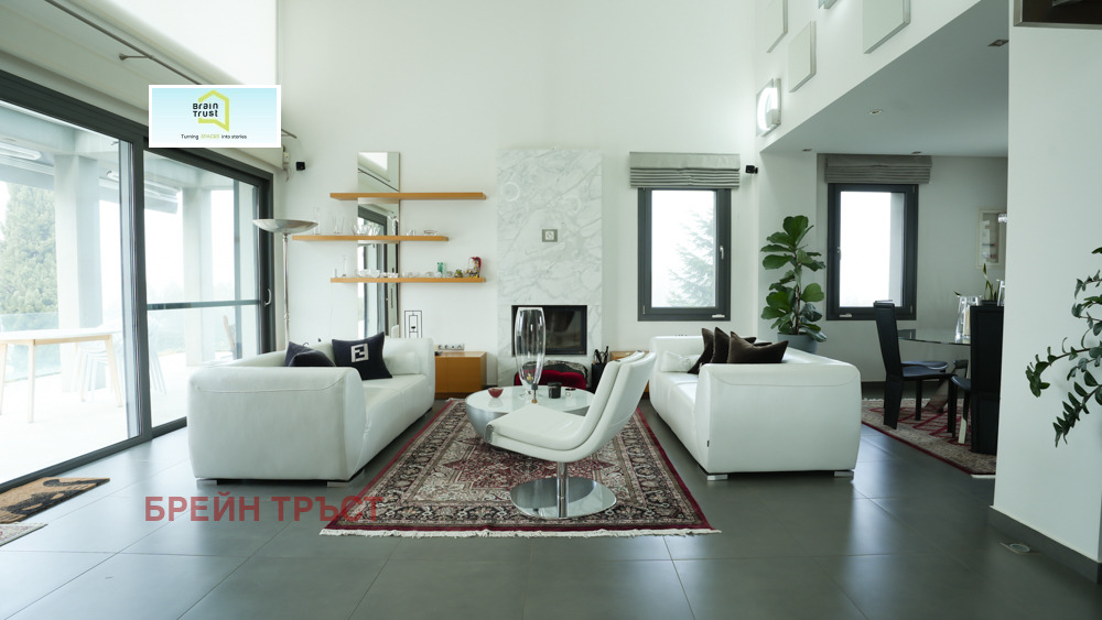 Brain Trust предлага за продажба луксозна вила с площ от 363 кв.м., построена през 2008 г., разположена върху частен парцел от 6300 кв.м., намираща се в спокойния район Тагарадес Терми, само на 9 км от летище Солун. Имот с изключителен дизайн и качество, предлагащ уединение, комфорт и модерни енергийно ефективни характеристики. Имота разполага с 5 спални, 4 бани + 1 тоалетна, 2 кухни, 2 дневни, 6 паркоместа (3 вътрешни и 3 външни), вътрешен асансьор, вътрешно стълбище, отопление и енергийни системи: Автономно отопление с термопомпа, подово отопление с независим контрол на нивото, климатик и пълна топлоизолация, инсталирана фотоволтаична система, генерираща среден доход от 7000 евро на месец - 25-годишен договор с доставчика на електроенергия. Енергиен клас 'A'. Конструкцията е с алуминиева дограма с тройно енергийно остъкляване. Подовете са от мрамор и плочки. Висококачествено строителство. Допълнителни характеристики: Плувен басейн, просторна озеленена градина с морава и дървета, склад, блиндирана врата, видеодомофон, алармена система, охранителни камери, безпрепятствена гледка към планината и зеленината, в тиха и уединена обстановка с лесен достъп до Терми и летището.