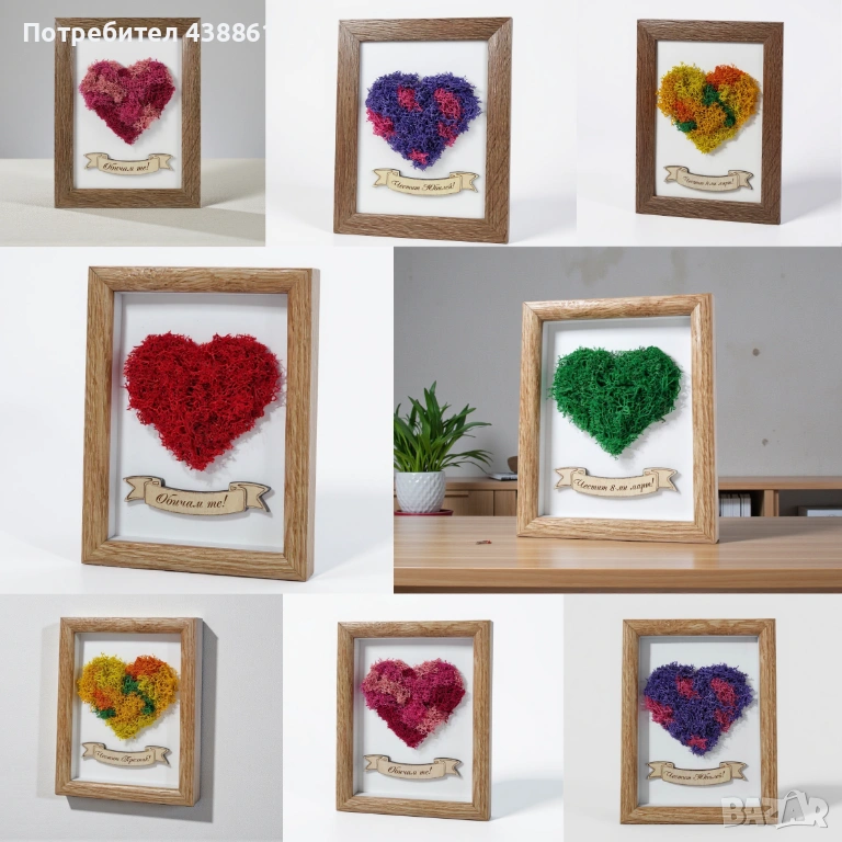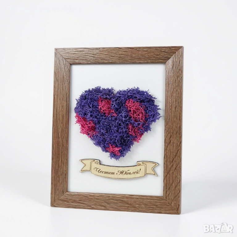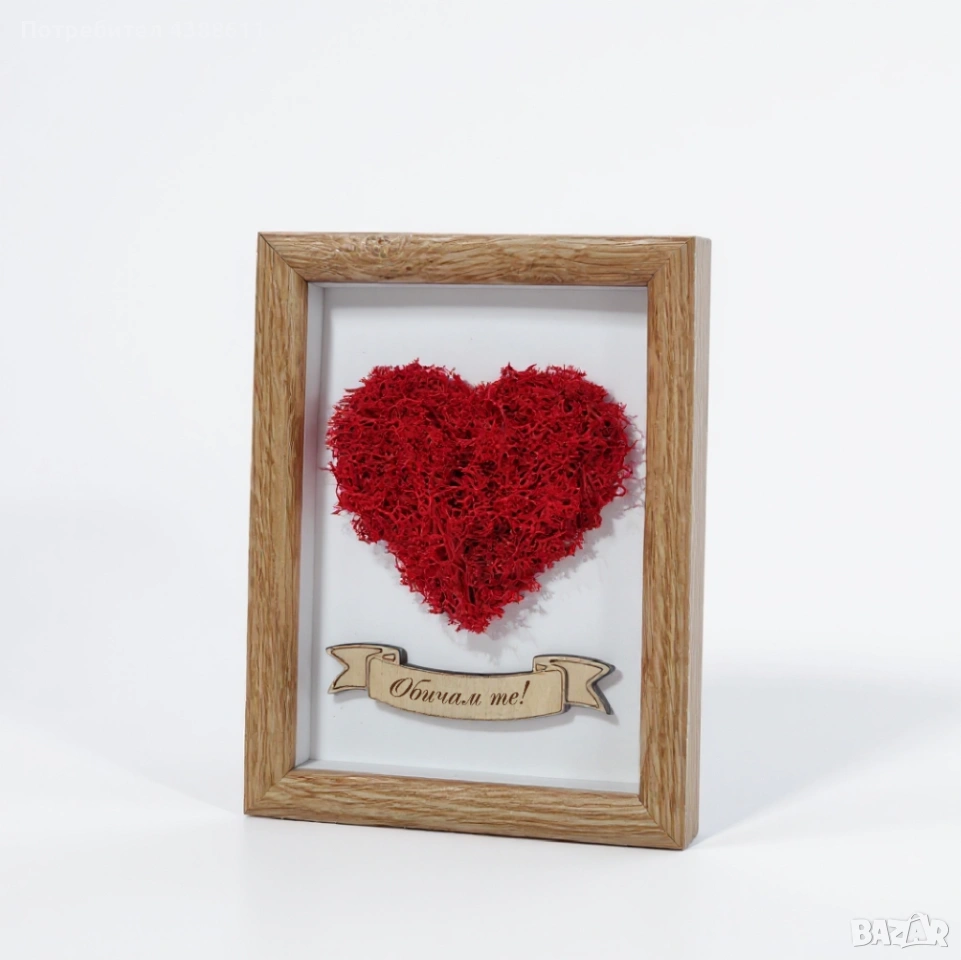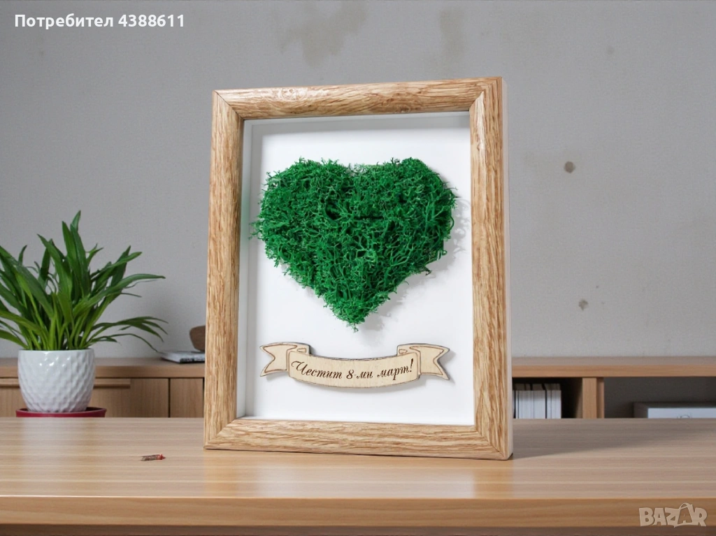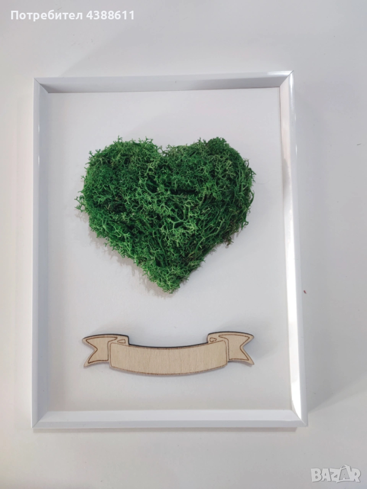 Рамка със сърце от скандинавски мъх и лично послание → Обява 53424588