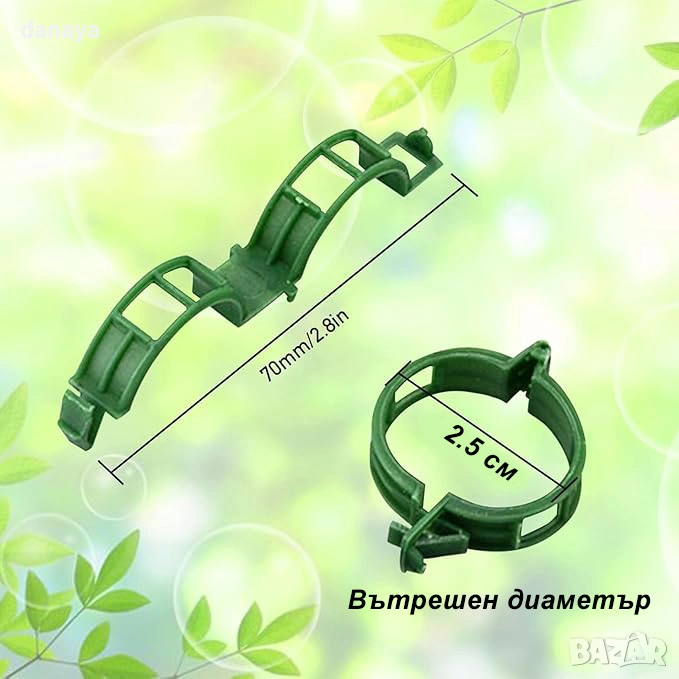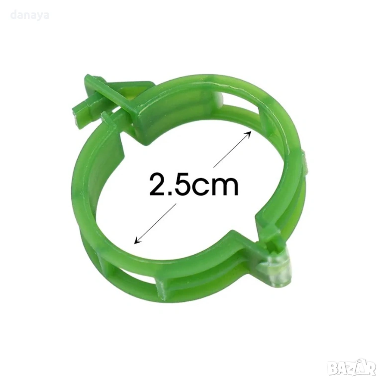 Изработени от лек и устойчив пластмасов материал, клипсовете се затварят лесно и държат здраво към опора, колче или тел. Кръглата форма с вътрешен диаметър 2.5 см позволява сигурно закрепване, без да притиска растението и без да пречи на растежа.