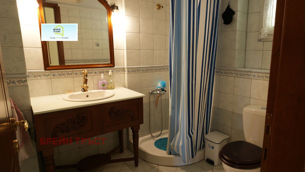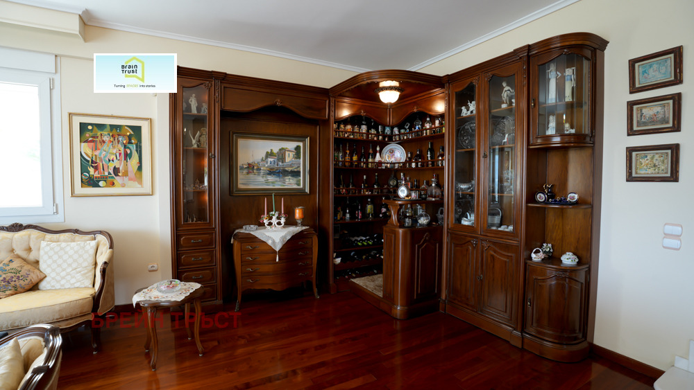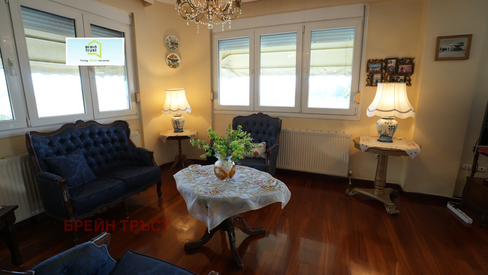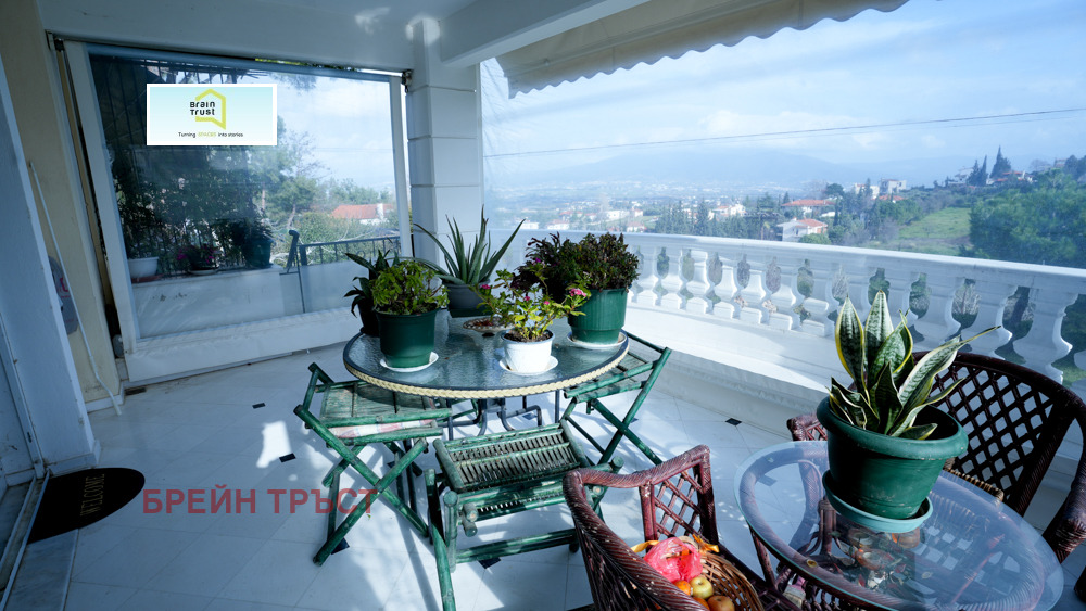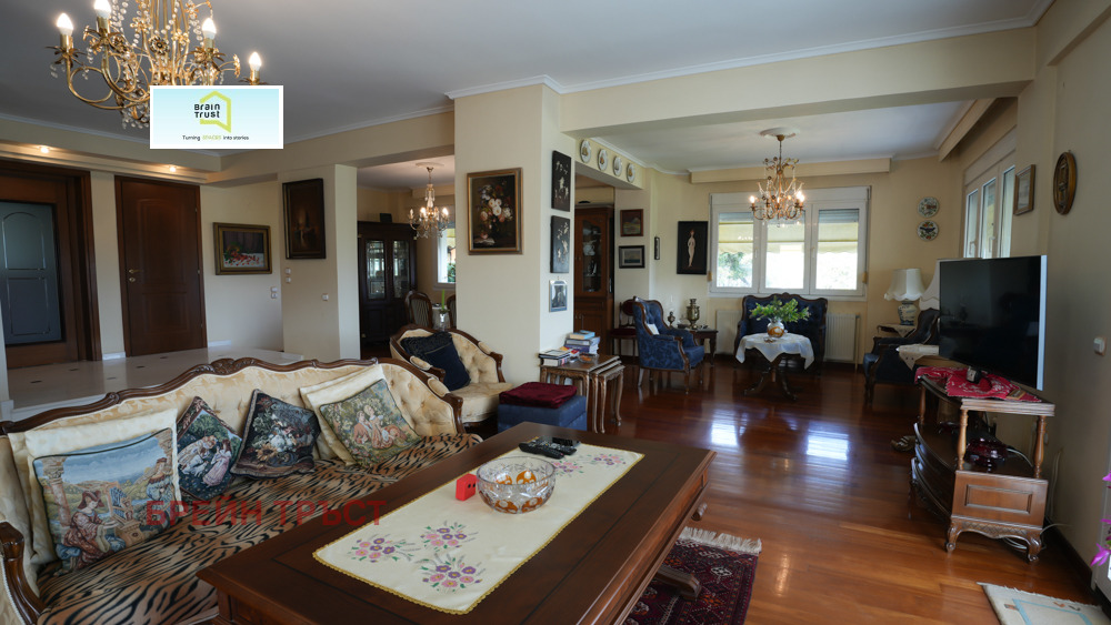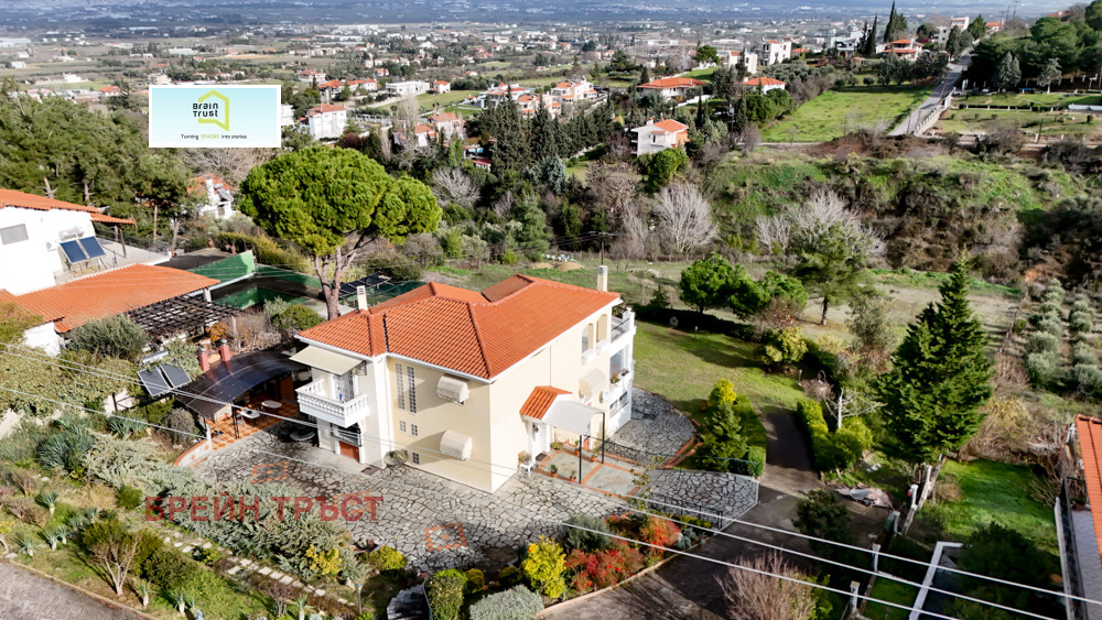 Brain Trust предлага за продажба Луксозна вила в Терми, Нео Рисио. В тих, зелен район близо до Терми и с лесен достъп до Солун, тази триетажна вила с площ от 350 кв.м. е разположена върху парцел от 4800 кв.м. Построена през 2000 г. и в отлично състояние, тя съчетава лукс и комфорт, идеална за семейства. Разполага с 3 спални (включително главна спалня със самостоятелна баня и гардеробна), 3 бани, напълно оборудвана кухня, просторна всекидневна с естествена светлина, стая за игра, складово помещение, вътрешен асансьор и стълбище. Голямата градина с автоматично напояване и частен двор предлагат уединение, докато източното изложение и безпрепятствената гледка към планините и зеленината правят дома светъл и приветлив. Напълно обзаведен, просторен, с отопление на нафта, климатик, слънчев бойлер, алуминиеви прозорци с двоен стъклопакет и енергиен клас 'B'. Включва едно паркомясто.