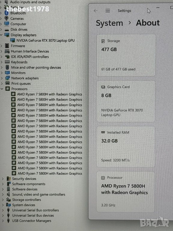 Разноцветна подсветка на клавиатурата,бърза рам памет 32GB и SSD NVMe 512GB,правят машината светкавична.
