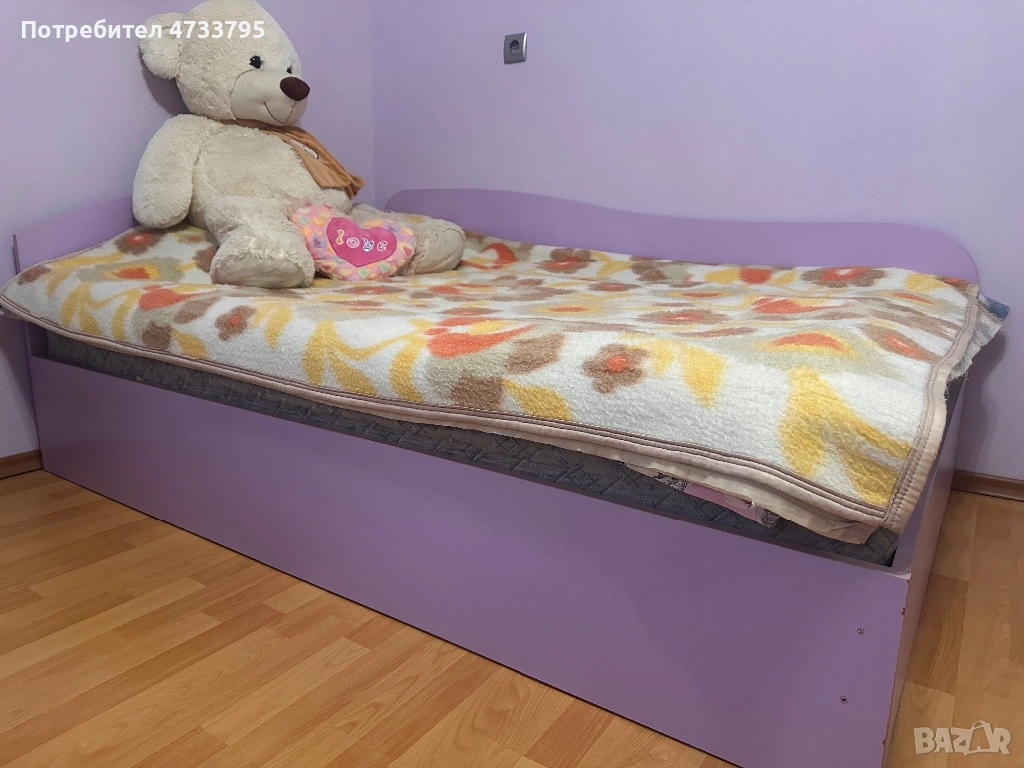 Цялостно обзавеждане за детска стая.Включва:легло с матрак+механизъм(размери 196д х125ш х65-70в/,секция(размери 225д х190в) и бюро(120д х 60ш х 74в)+ ПОДАРЪК СТОЛ ЗА БЮРО.