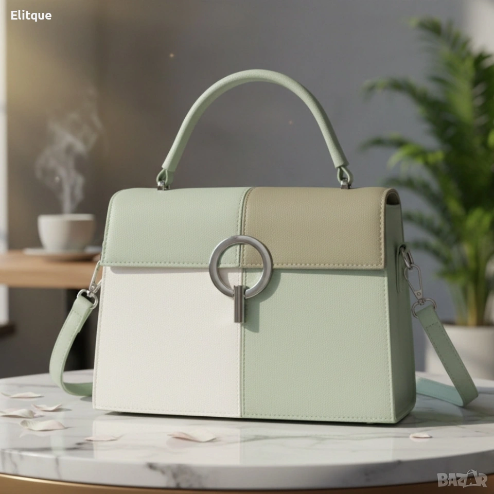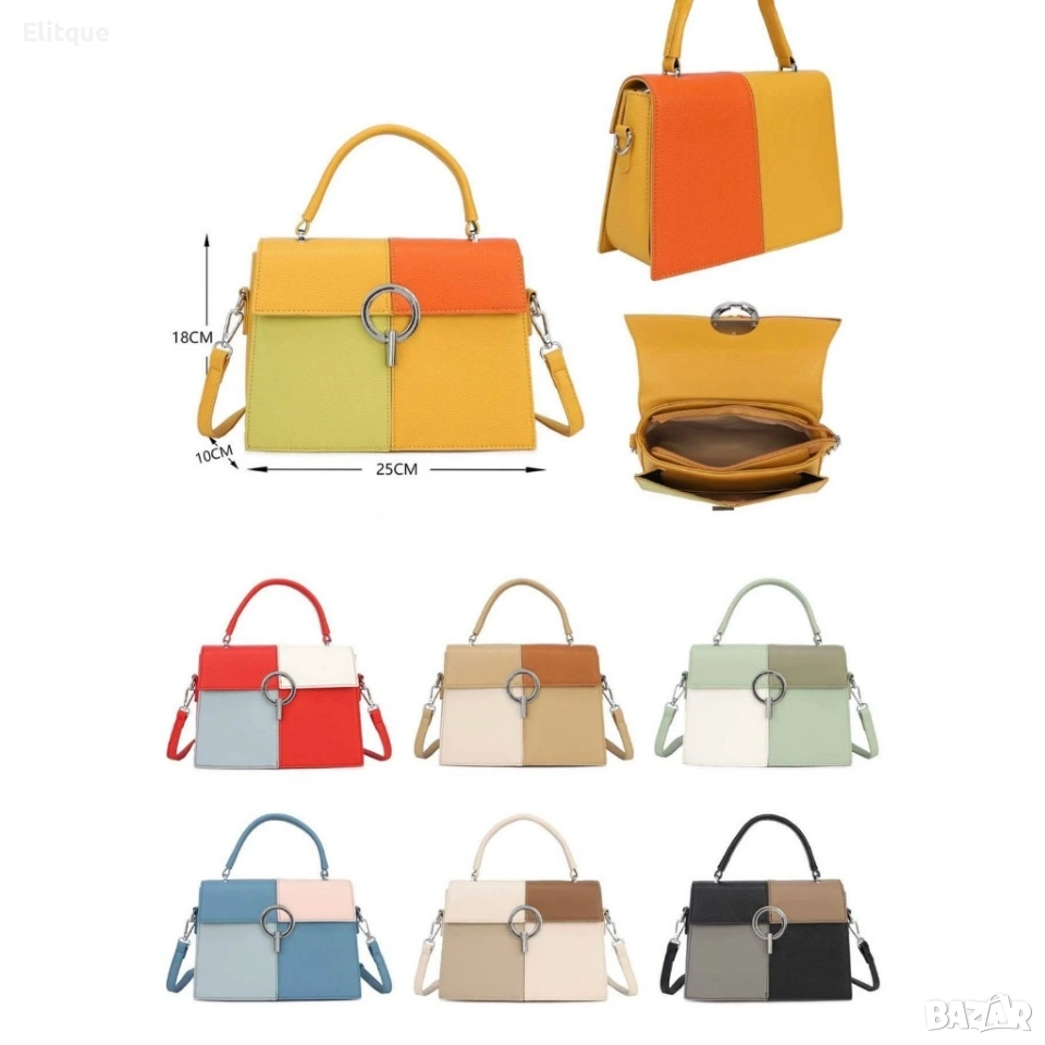 Размери: 25 x 10 x 18 см — компактен, но достатъчно просторен за ежедневни нужди. Материал: 100% синтетичен материал, лесен за почистване и поддръжка. Целеви сезон: Пролет/лято — стилна и свежа визия за по-топлите месеци. Носене: Ръкохватка и дълга регулируема дръжка за различни начини на носене. Закопчаване: Метална тока, която осигурява сигурно затваряне и естетичен завършек. Подредба: Основно отделение с вътрешни джобове за организация на лични вещи.