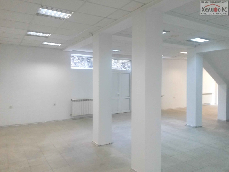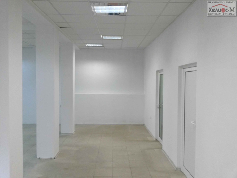 !!! МАГАЗИН !!! ОФИС !!! ПРЕДСТАВИТЕЛСТВО !!! Отлична възможност за развитие на успешен бизнес. Просторен обект на ниво улица с площ 140 кв.м. Подходящ за всякакъв вид търговска дейност, включително хранителен магазин, офис или представителство на куриерска фирма. В момента функциониращ като магазин за железария. С големи панорамни витрини, отлична видимост и възможност за брандиране. Функционално разпределен в търговска зала, офис, склад и две санитарни помещения. С два самостоятелни входа и опция за разделяне на два по-малки обекта по 70 кв.м. Завършен с гранитогрес, латексови покрития на стените и окачен таван. Отоплението е с климатик. Предлага се с дългосрочен договор за наем. За допълнителна информация и организиране на оглед: ХЕЛИОС-М брокер недвижими имоти . Телефони за контакт: 0888 210 428 и 096 30 70 60. Агенцията предлага на своите клиенти пълен пакет от консултантски, посреднически и юридически услуги при покупка, продажба и отдаване под наем на недвижими имоти. На ваше разположение е екип от квалифицирани брокери, адвокати и архитекти с дългогодишен опит в сферата на недвижимите имоти. Нашите служители ще изготвят всички необходими документи за нотариалното приключване на сделката, както и ще окажат съдействие при финансиране чрез банков кредит за закупуване на избрания от вас имот. Уебсайт на агенцията: www.helios-m.com