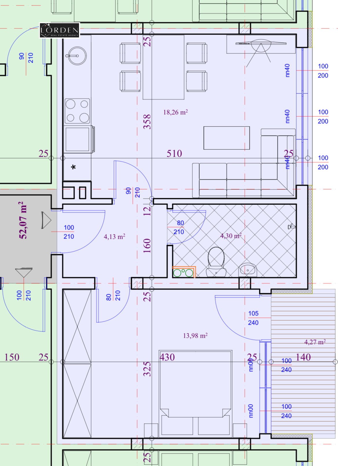 Агенция за недвижими имоти LORDEN продава двустаен апартамент с площ 52.07 кв.м. и 7.27 кв.м. идеални части от общите части на сградата, разположен на втори етаж в новоизграждаща се жилищна сграда на ул. Васил Априлов в град Пазарджик.