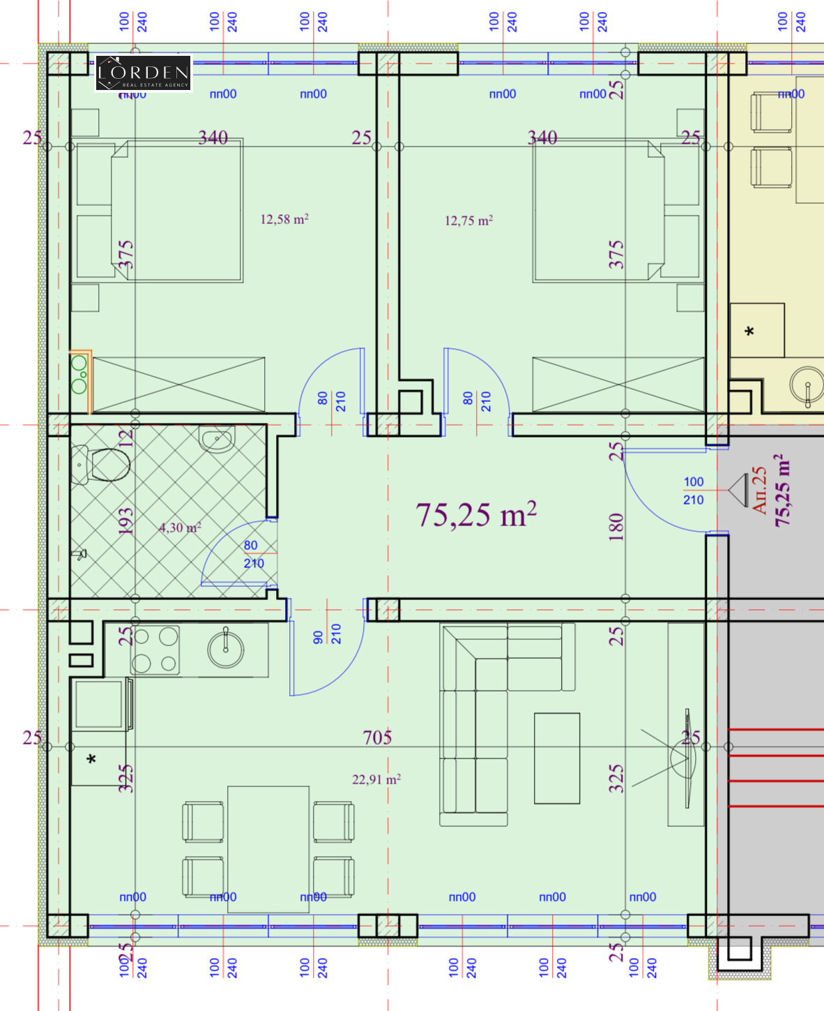 Агенция за недвижими имоти LORDEN продава тристаен апартамент с площ 75.25 кв.м. и 10.51 кв.м. идеални части от общите части на сградата, разположен на пети жилищен етаж в новоизграждаща се сграда на ул.Васил Априлов в град Пазарджик.