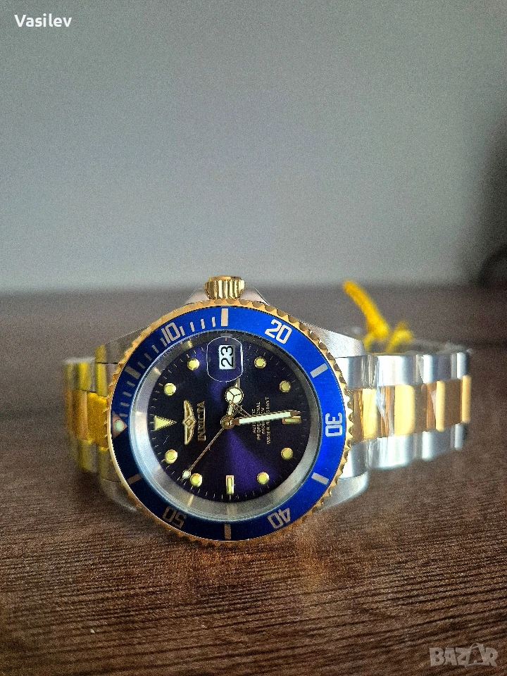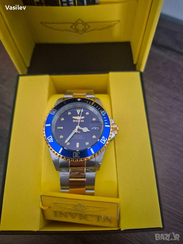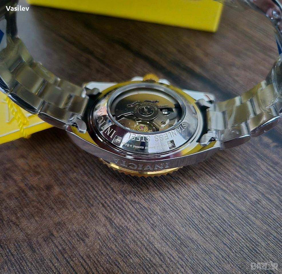 Мъжки автоматичен часовник Invicta , диаметър-40ммбез коронката. Автоматичен механизъм на сейко. Часовника е с предпазните лепенки!!!