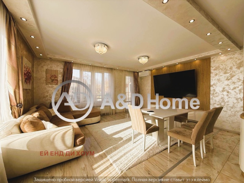 Имотът е с площ от 230 кв.м., разположен на трети (последен) етаж.