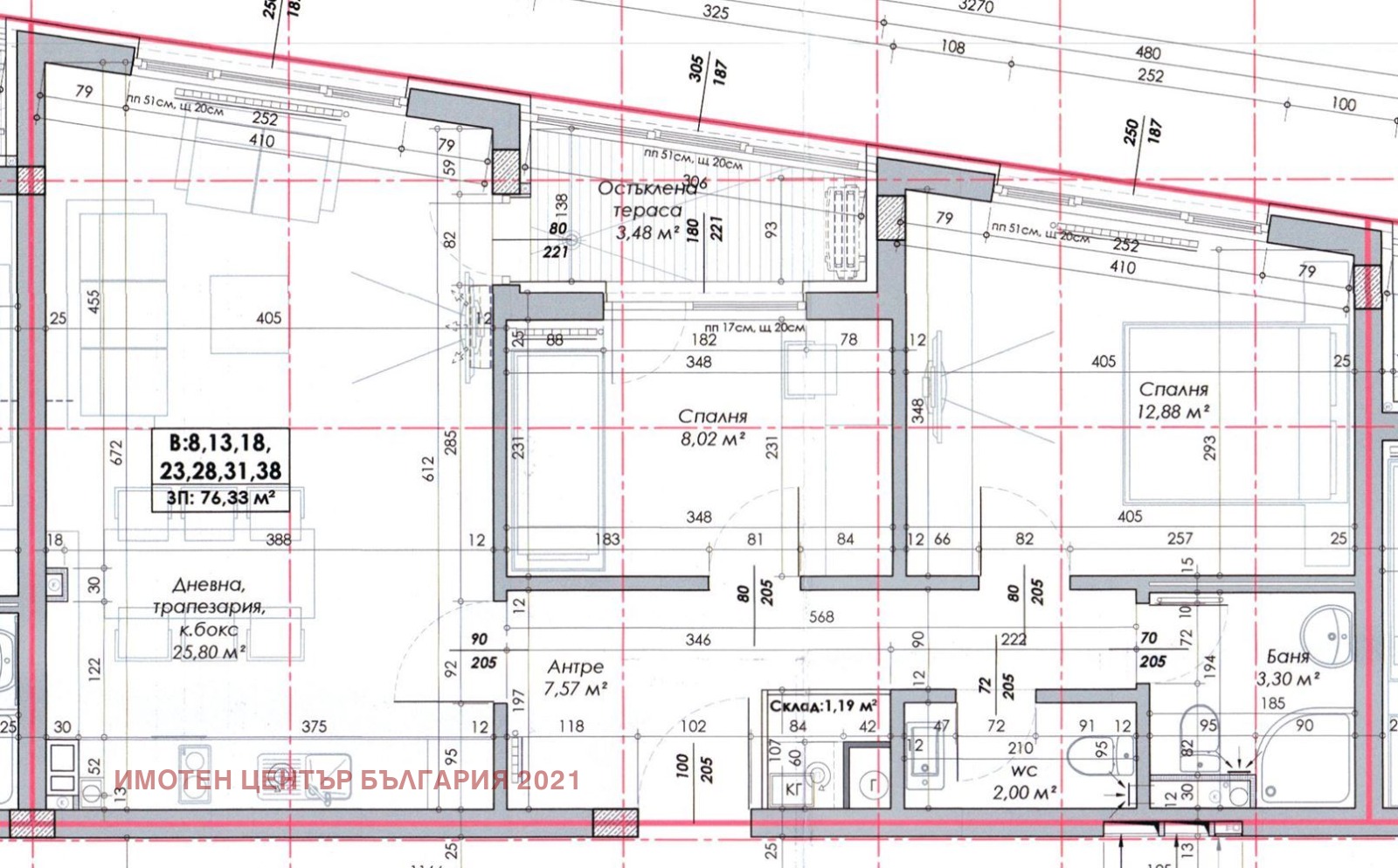 Чиста жилищна площ:76,33 кв.м