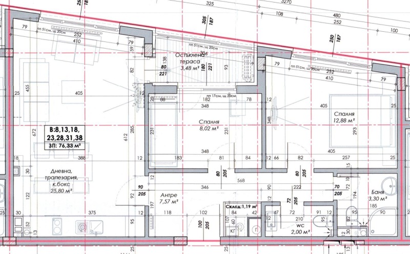 Чиста жилищна площ:76,33 кв.м