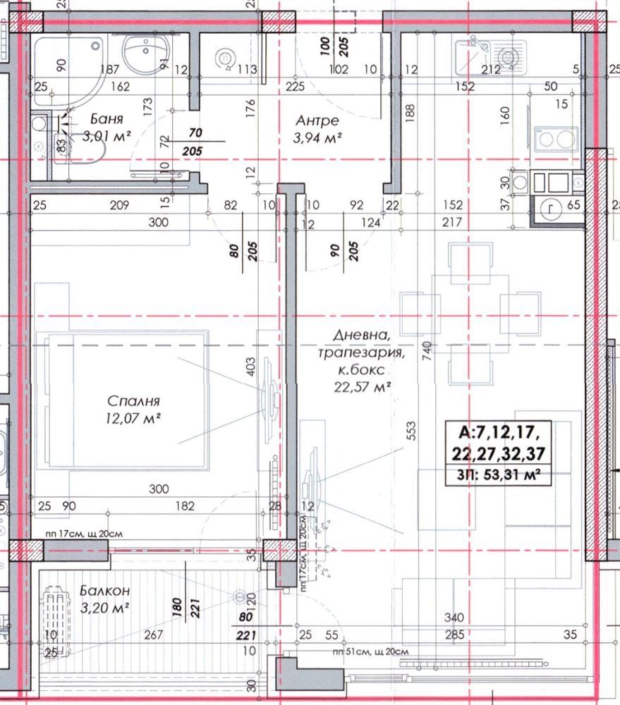 Чиста жилищна площ: 53,31 кв.м
