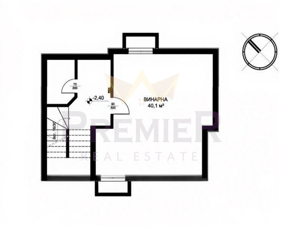 Сутерен ( 70 кв. м.) с английски прозорци, по проект винарна, но може да бъде и офис, игрална зала или каквото пожелаете