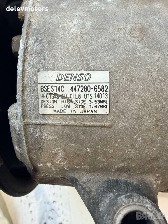 447280-6582 / 6SES14C компресор за климатик от Toyota Corolla 1.6i Valvematic Comfort, 132ph., engine 1ZRV, 6 sp., 2015, euro 5B, 84 000 km.,Тойота Корола 1.6 I, 132 кс., двигател 1ZRV, 6 ск., 2015г., евро 5Б., 84 000 км. в автоморга Delev Motors, между с. Каменар и с. Куманово гр. Варна.