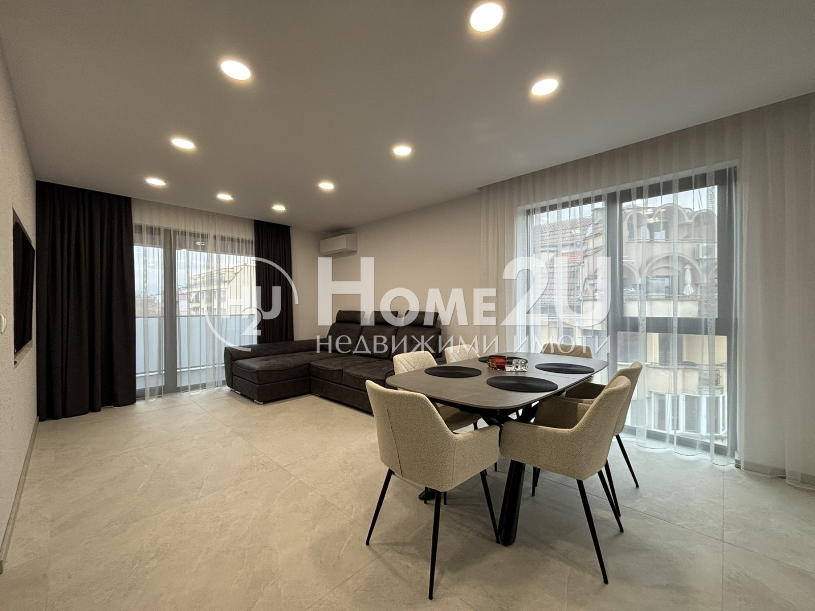 ➡️ Обзавеждане: всичко необходимо за живеене вградена кухня с уреди, луксозна мека мебел, маса за хранене, гардероби, пералня + сушилня и климатици в трите помещения.