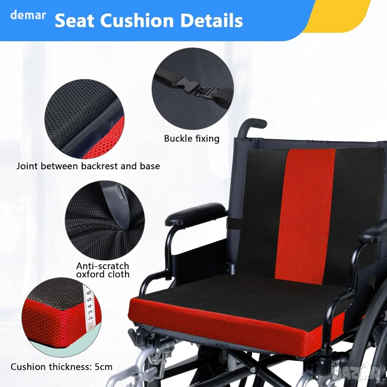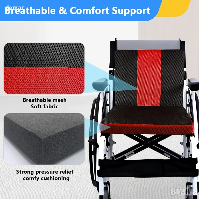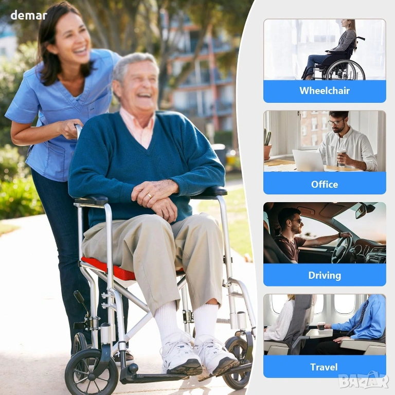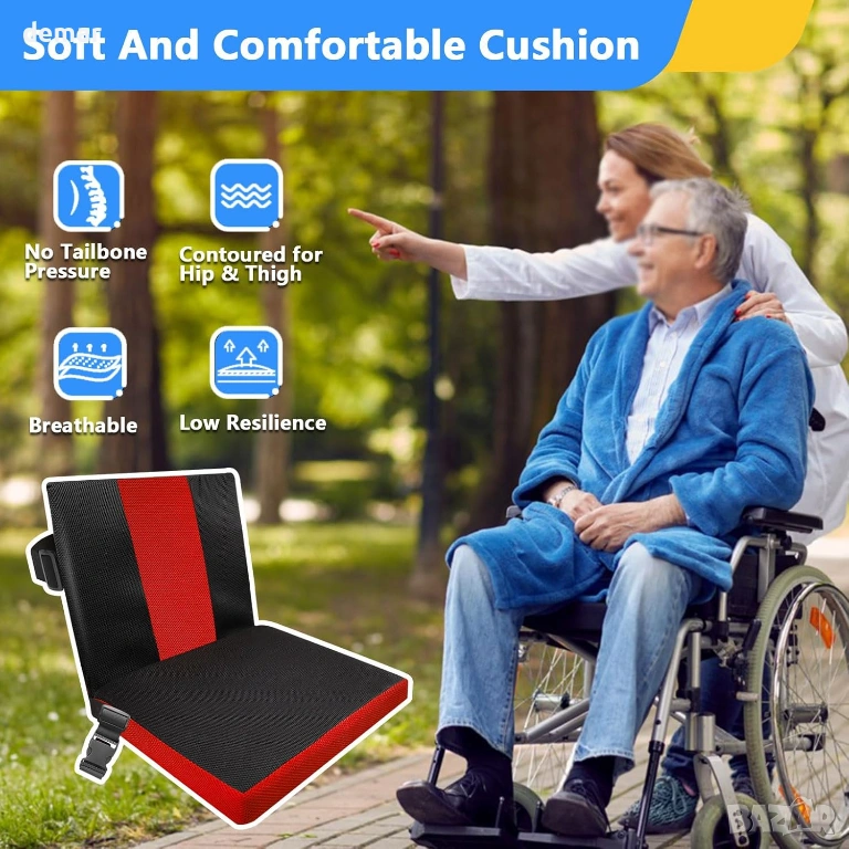 Тази възглавница за седалка на инвалидна количка е проектирана да осигурява дълготраен комфорт и надеждна опора, като разпределя равномерно натиска, за да намали дискомфорта по време на продължително седене. Ергономичната ѝ, удебелена форма следва естествените контури на бедрата и ханша, за да подобри стойката, стабилността и да намали умората. Неплъзгаща се основа с надеждни фиксиращи ленти държи възглавницата здраво на място за допълнителна безопасност по време на движение и преместване. Водоустойчивият калъф против петна позволява бързо и лесно почистване, поддържайки ежедневните хигиенни нужди, а лекият, подвижен дизайн я прави удобна за носене, поддръжка и употреба у дома или в движение.