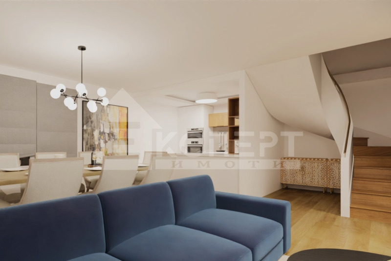 ⚡️ Разпределение (4 спални + офис): Първи етаж: Дневна с кухненски бокс 40 кв.м + Баня/WC 4.28 кв.м + Веранда 12.25 кв.м + Стълбищна площадка 5.33 кв.м