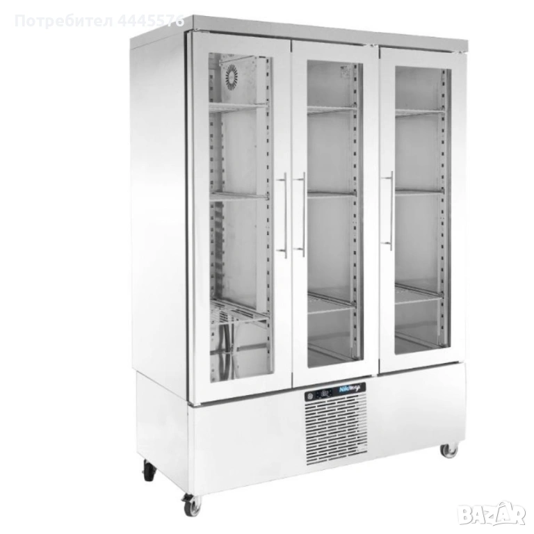 Хладилният шкаф TH GN 134KG е надеждно решение за ресторанти, кухни и зони за самообслужване, където видимостта и организацията са от ключово значение. С капацитет 907 литра и три остъклени врати, уредът осигурява отлична презентация на продуктите и бърз визуален контрол без излишно отваряне. Изработен от неръждаема стомана AISI 304, шкафът е устойчив на интензивна експлоатация и лесен за поддръжка. Температурният диапазон от -1°C до +8°C се управлява чрез електронен термостат, а автоматичното размразяване гарантира безпроблемна работа. Подходящ за гастронорми, с 9 регулируеми рафта за гъвкаво подреждане.