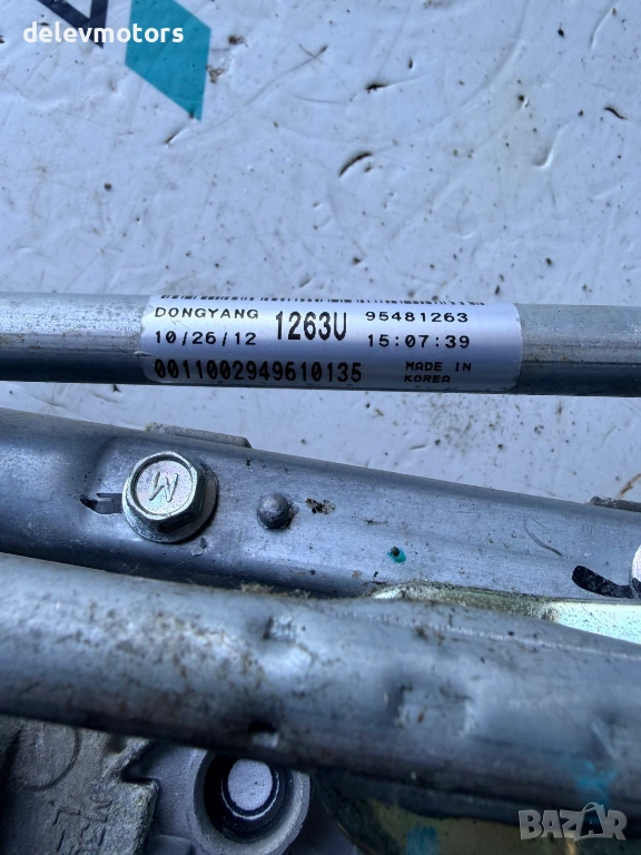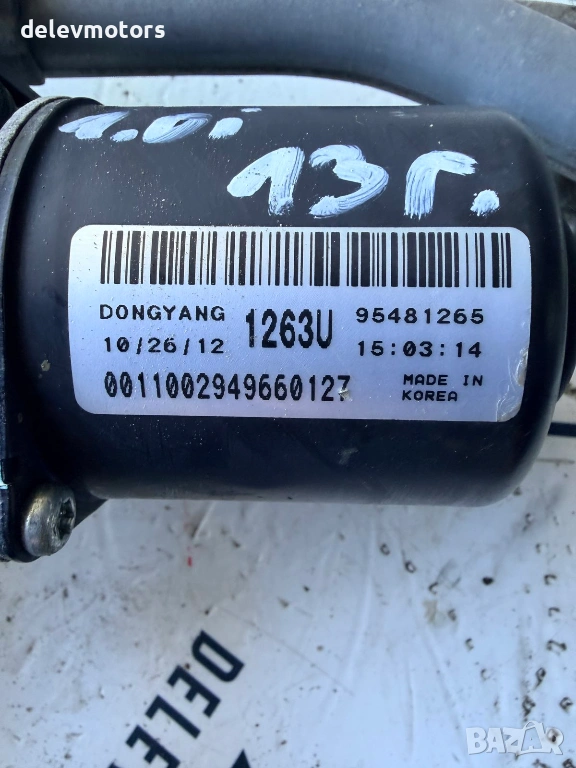95481265 / 95481265 механизъм с моторче за чистачки от Chevrolet Spark (M300) 1.0i, 68 ph., engine LMT, 5 sp., 2013, 71000 km., euro 5, Шевролет спарк 1.0i, 68 кс., двигател LMT, 5 ск., 71 000 км.,2013г., евро 5 в автоморга Delev Motors, между с. Каменар и с. Куманово гр. Варна.