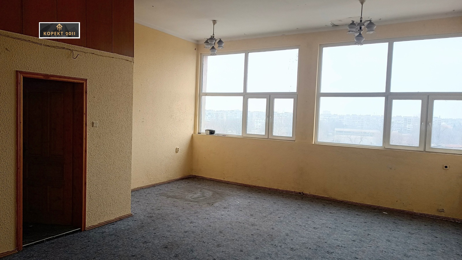 *5-ти етаж - едно помещение от 60кв.м., представляващо директорски кабинет с две преходни помещения и със собствен санитарен възел