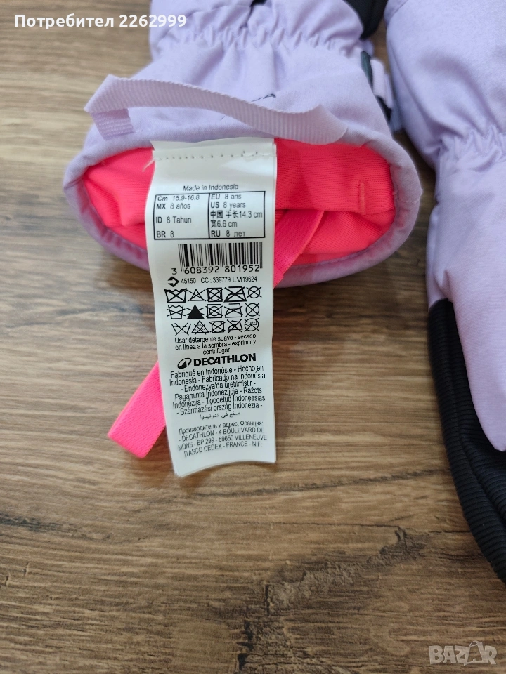 Нови ръкавици за момиче на възраст 8 години закупени от Декатлон.