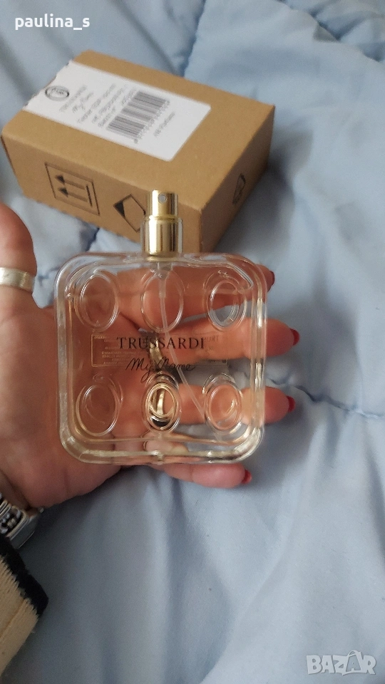 3️⃣. Дамски парфюм "My name" by Trussardi / 100ml EDP / Italy. Цената е крайна, без пазарлъци 55 евро. Дамски дизайнерски парфюм, с доказано качество в годините, в тестерна опаковка, без капачка. Част от личната ми колекция, който никога няма да ползвам. Подходящ е за подарък или повод. Информацията и ароматната пирамида са от Фрагрантика.