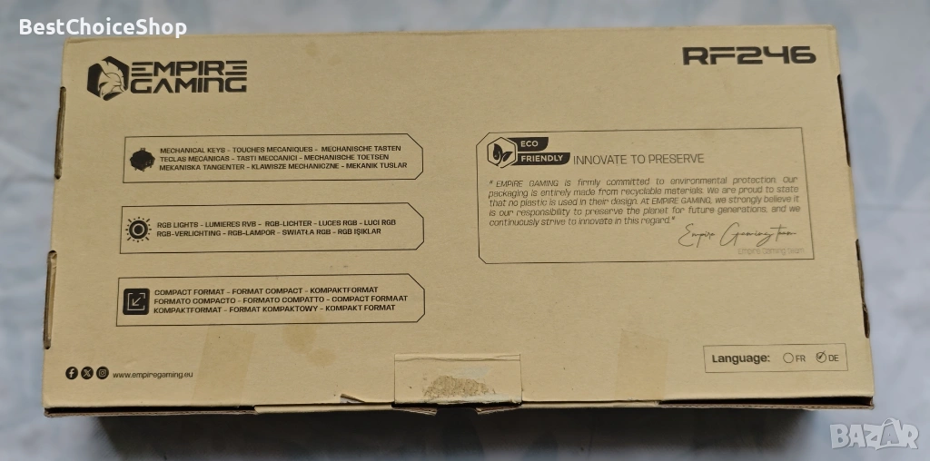 Оригинална механична клавиатура Empire Gaming RF246 – компактно решение за гейминг и ежедневна работа. Моделът предлага механични суичове и RGB подсветка в удобен, спестяващ място формат.