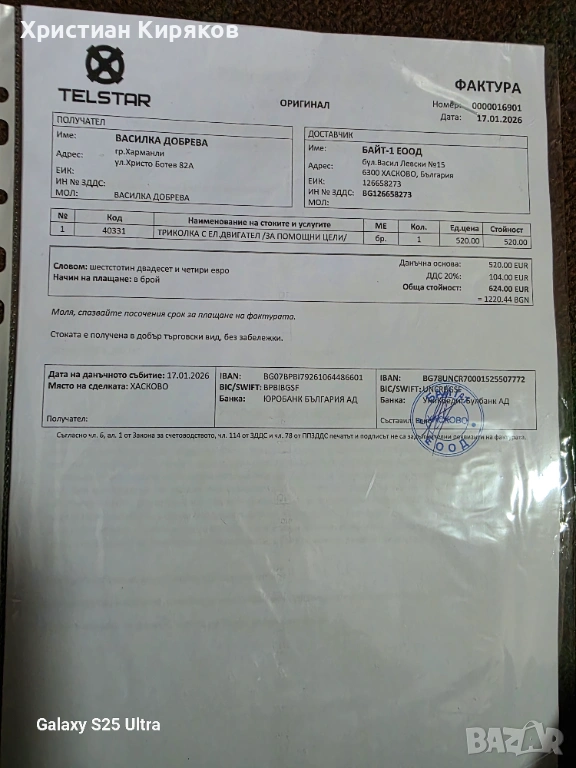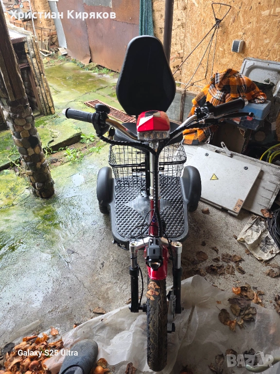 Триколката само е пробвана и поради невъзможност от управление от човека се продава.Закупена е на 17.01.2026 г. с гаранция 2 години!Безчетков мотор - номинал 249W, max 750W, задно предаване с диференциал.4 акумулаторни батерии по 12V (48V напрежение) гелови, необслужваеми.Пробег:до 40 км в зависимост от теглото и терена.Максимална скорост:25 км/ч ; 35 км/ч.товароносимост: до 140 кг.- удобна седалка с облегалка - регулируемо кормило - три предни + 1 задна скорост - преден фар с индикатор за нивото на батерията - допълнителен преден LED фар - предна спирачка - двойна задна дискова спирачка - заден стоп с мигачи - с масур за газ, а не с палец.размер в сглобен вид: Д/Ш/В: 127 х 74 х 122 см (в максимално горно положение на седалката)с големи 12 `` задни гуми,предна гума- 16``