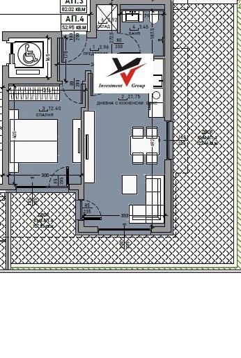 LV Investment Group предлага на своите клиенти прекрасен ДВУСТАЕН апартамент, разполагащ със собствен двор с площ от 122 кв.м. в сграда Авигея, намираща се в кв. Малинова долина, ул. Йордан Стратиев. Разпределението на имота е следното: