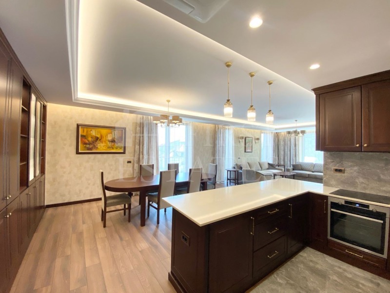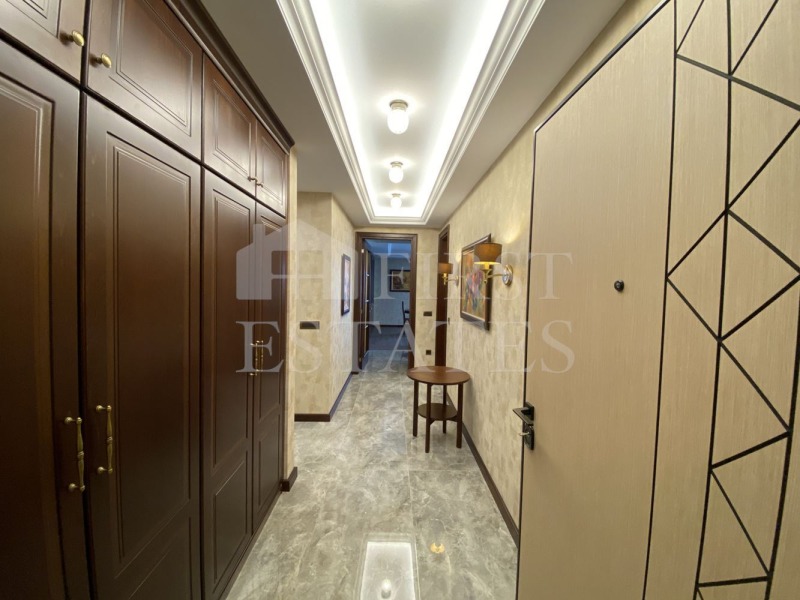 First Estates с удоволствие представя напълно обзаведен апартамент, завършен по дизайнерски проект, съчетаващ усещане за изискан лукс с елегантни класически елементи. Бъдещите наематели на този впечатляващ имот ще се насладят на простор, отлично поддържани общи части и комуникативно, но спокойно местоположение в един от най-предпочитаните квартали на града.