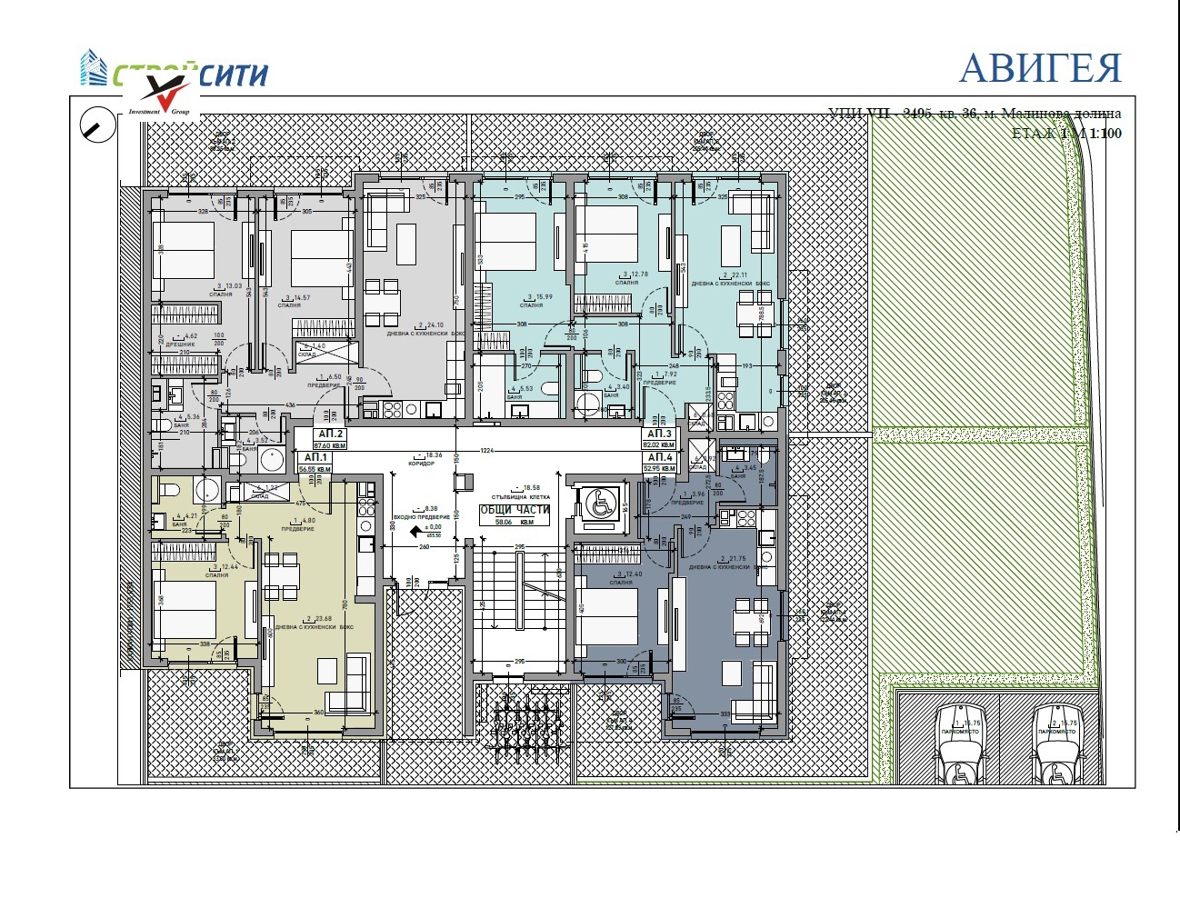 - общи части: входно преддверие на сградата - с дизайн по проект.