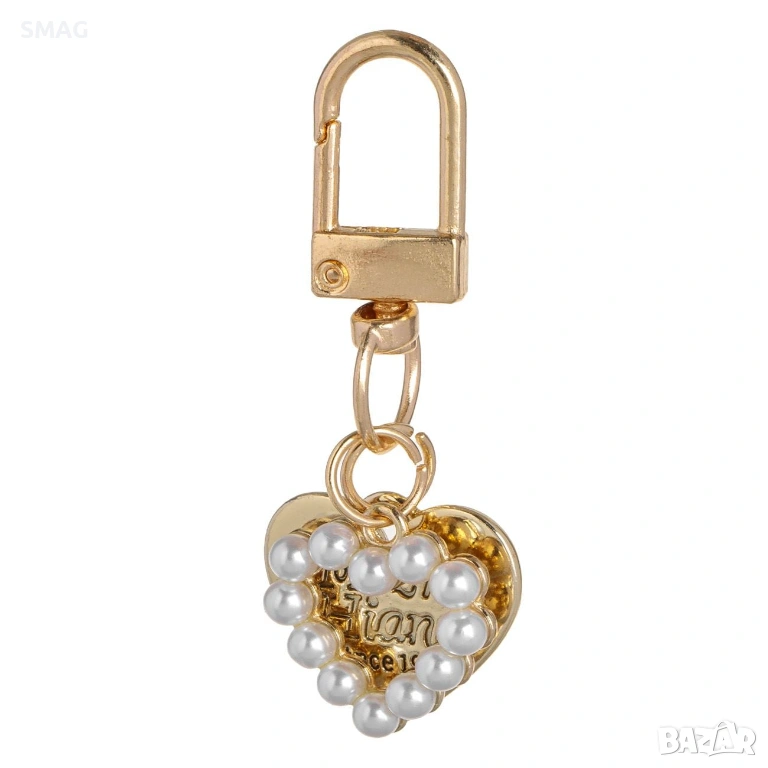 Елегантен декоративен charm за ключодържател със златисти сърца и фини бели перли. Придава стилен и романтичен акцент на ключове, чанти, раници или портмонета. Благодарение на удобната кукичка се закача лесно и сигурно, което го прави практичен и едновременно с това красив аксесоар.