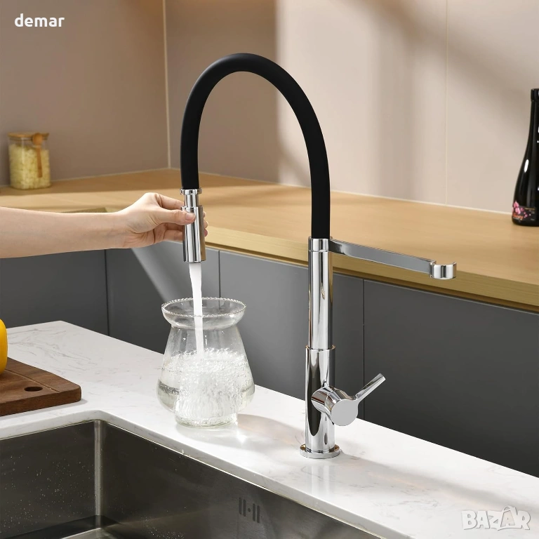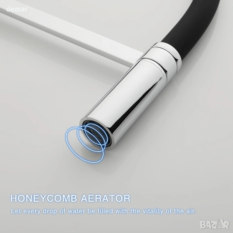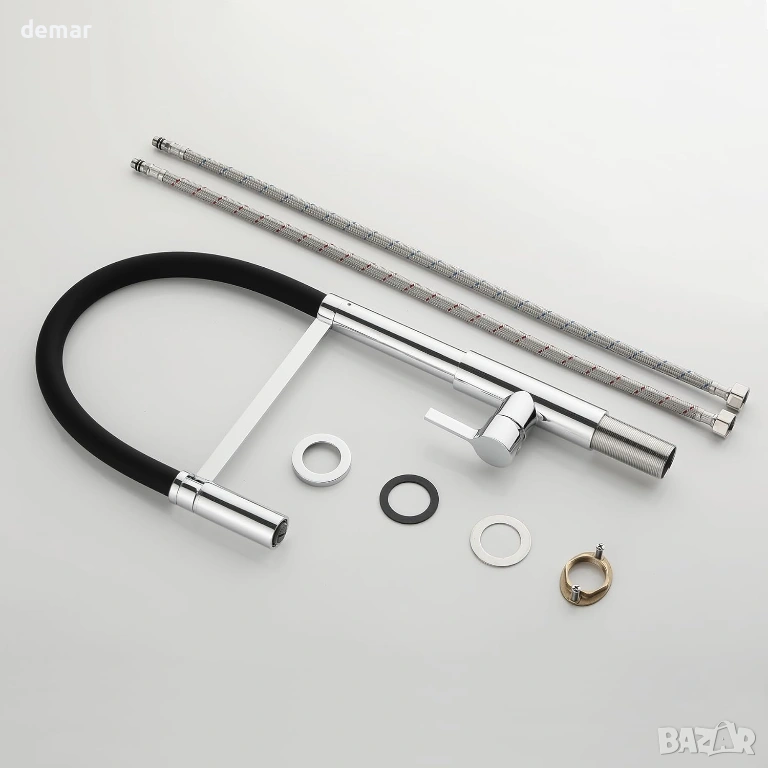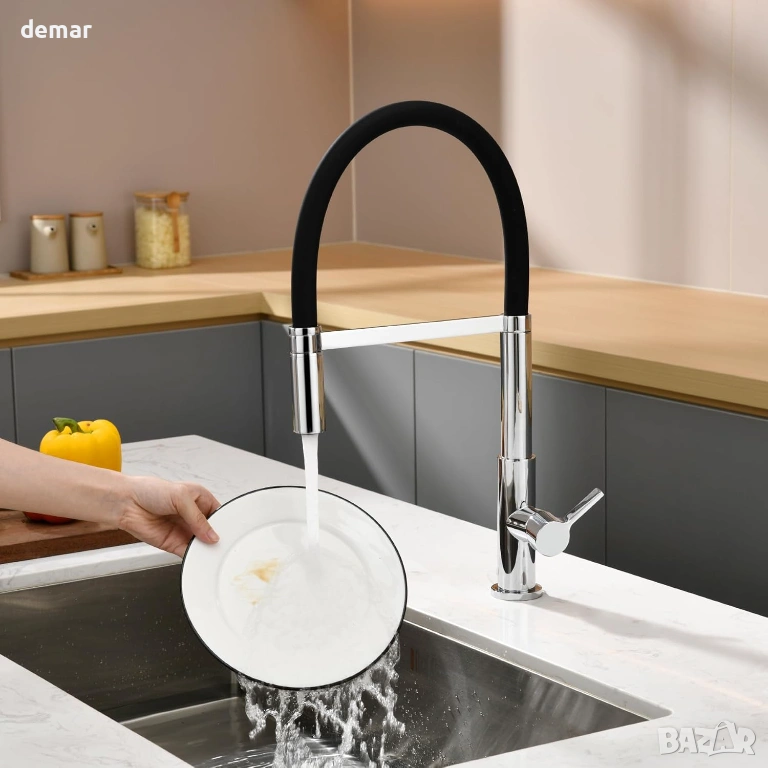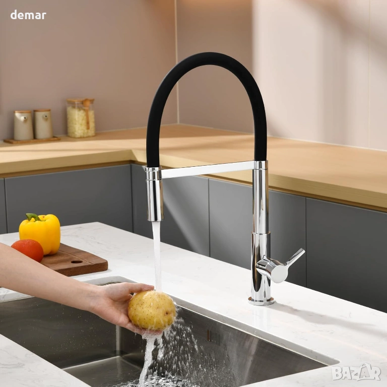 Гъвкав кухненски смесител с 360° въртящ се силиконов маркуч за пълно покриване на мивката, проектиран за ежедневни кухненски задачи. Разполага с издръжлив керамичен патрон за плавна и стабилна работа и намален риск от течове. Изработен от висококачествен месинг с износоустойчиво хромирано покритие за устойчивост на корозия и ръжда, като силиконовият маркуч запазва формата си с течение на времето. Лесен за почистване с просто избърсване, с подвижен аератор за рутинна поддръжка. Доставя се с всички фитинги и ясни инструкции, използвайки G1/2 връзка, за лесен монтаж.