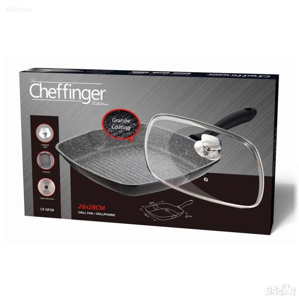 Грил тиган 28см с капак и мраморно покритие Cheffinger – за индукция, с противоплъзгаща дръжка