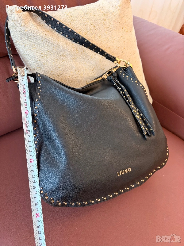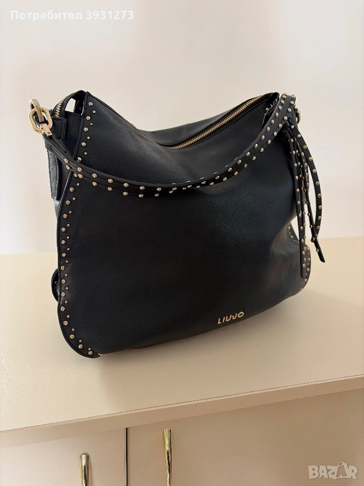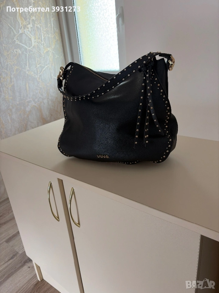 Продавам оригинална дамска чанта LIU JO в черен цвят, бохо стил, изработена от висококачествена изкуствена кожа.