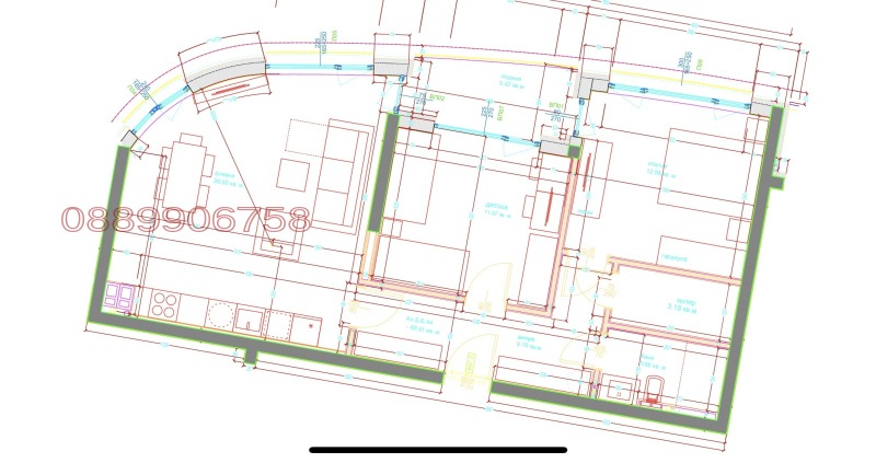 Състои се от просторен дневен тракт, родителска и детска спалня, килер, баня с тоалет, прекрасна лоджия. Към апартамента има и избено помещение. Входа разполага с два големи асансьора стигащи до подземния гараж.