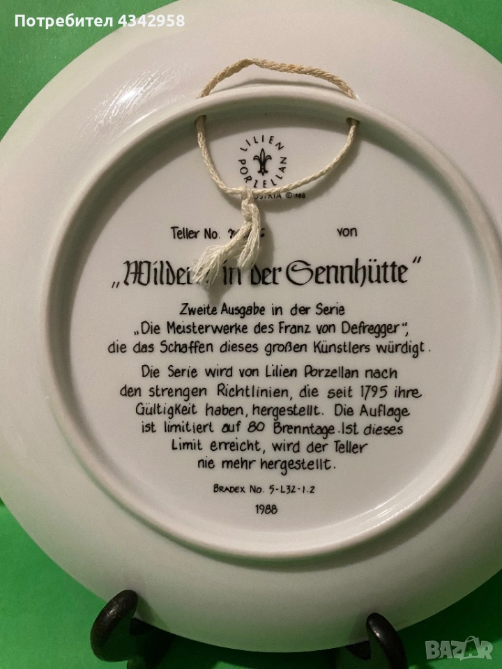 Оригинална декоративна порцеланова чиния на австрийската фабрика Lilien Porzellan, част от колекционерската серия