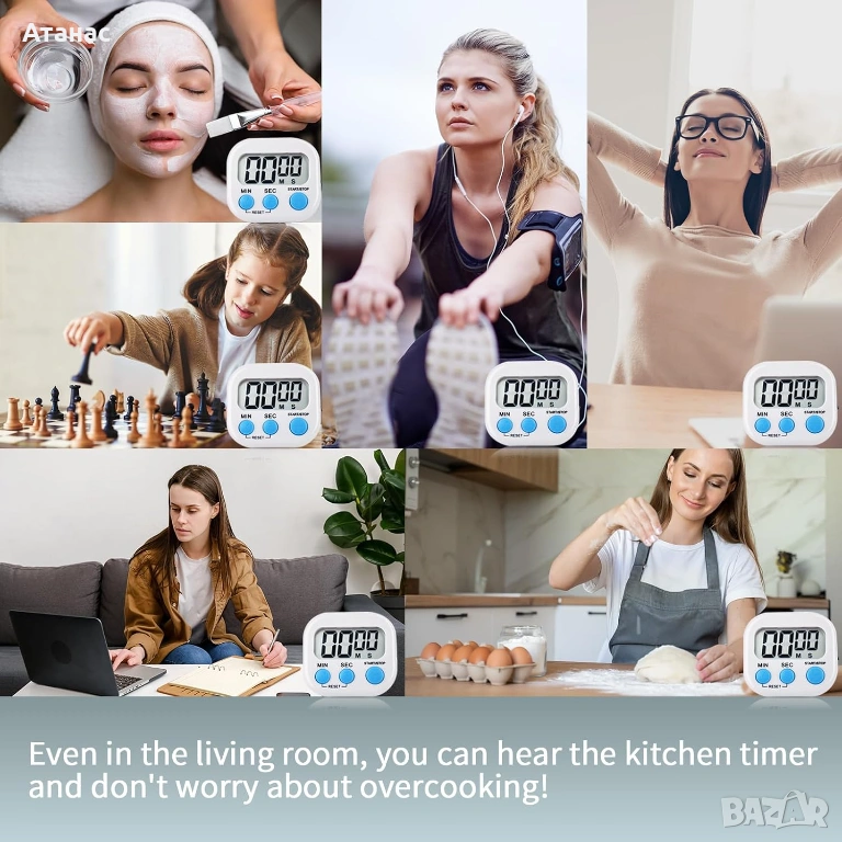 функционален таймер е вашият идеален помощник в кухнята и не само. С голям LCD