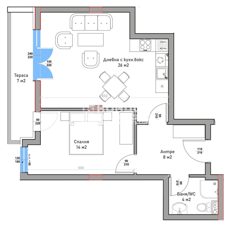 Оферта 68834 - Предлагаме ви двустаен апартамент с ИЗЦЯЛО ЮЖНО изложение в новоизграждаща се малка бутикова сграда, разположена на тихо и спокойно място в сърцето на кв. Въстанически ! Жилището е изцяло вътрешно и се състои от просторна дневна с площ от 25,70 кв.м., една самостоятелна и комфортна спалня с площ от 14 кв.м., широко входно антре с място за гардероб, баня с тоалетна и една тераса, обща и за двете стаи с открита гледка. Изпълнението е с висококачествени материали, отговарящи на всички съвременни изисквания: червена тухла, 6 -камерна ПВЦ дограма с дървесен цвят, топло и хидроизолация - 10см. , масивна входна блиндирана врата. Общите части и терасите ще са луксозно завършени с гранит, иноксови парапети и врачански камък. Сградата е се намира в близост до парк, детска градина, училище и удобен транспорт към централна градска част. Свободни външни Паркоместа, подземни Гаражи и партерни Гаражи. Разсрочено плащане в рамките на Строителството и възможност за закупуване чрез Банков Кредит !!!