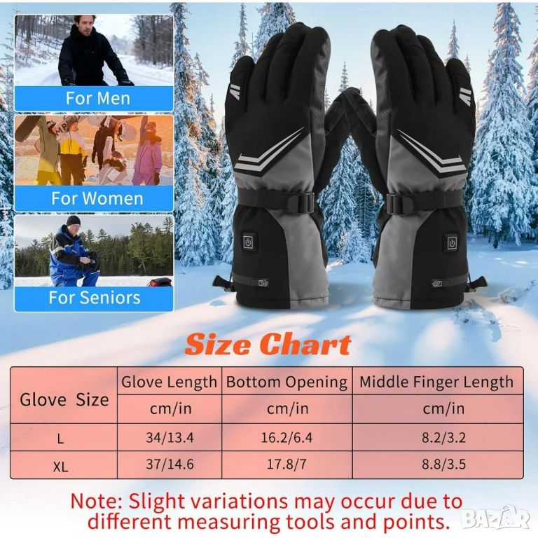 Затоплящите ръкавици са подходящи както за мъже, така и за жени и са перфектният аксесоар за всички вътрешни и външни зимни дейности. Батерийните ръкавици са отличен подарък за семейство и приятели по празници като Деня на благодарността, Коледа, рождени дни и Свети Валентин – практични и стоплящи сърцето. Подходящи са и за ски, колоездене, къмпинг или ринене на сняг.