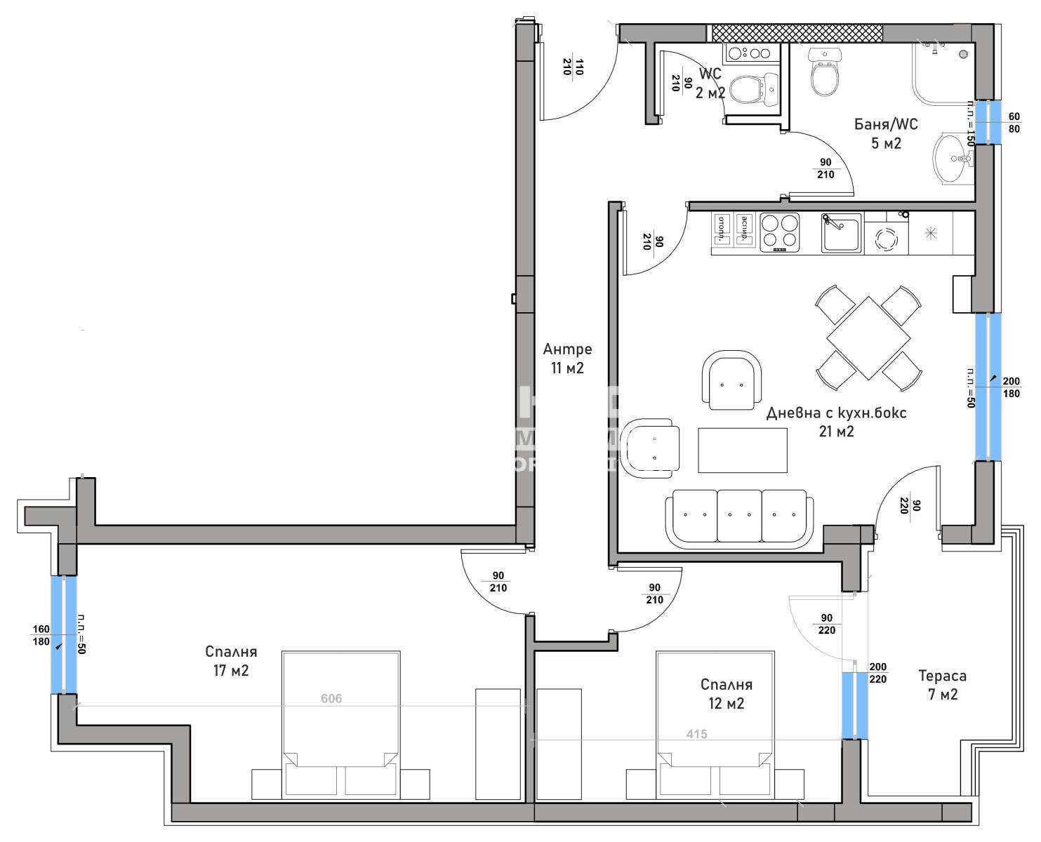 Оферта 68830 - Предлагаме ви тристаен апартамент с функционално разпределени в новоизграждаща се малка бутикова сграда, разположена на тихо и спокойно място в сърцето на кв. Въстанически! Жилището се състои от дневна с кухненски бокс, две самостоятелни спални: детска 12.20кв.м. и комфортна родителска с площ от 20 кв.м., входно антре, голяма баня с тоалетна, втора тоалетна и една тераса. Изпълнението е с висококачествени материали, отговарящи на всички съвременни изисквания: червена тухла, 6 -камерна ПВЦ дограма с дървесен цвят, топло и хидроизолация - 10см., масивна входна блиндирана врата. Общите части и терасите ще са луксозно завършени с гранит, иноксови парапети и врачански камък. Сградата е се намира в близост до парк, детска градина, училище и удобен транспорт към централна градска част. Свободни външни паркоместа, подземни гаражи и партерни гаражи. Разсрочено плащане в рамките на строителството и възможност за закупуване чрез Банков Кредит !!! Приложените изображения са от готова сграда на строителната компания!