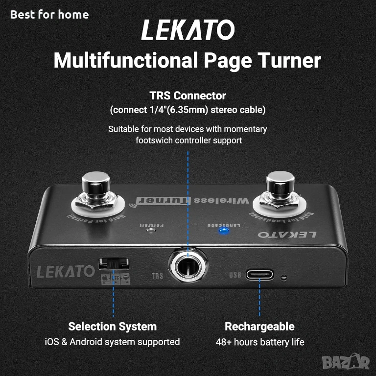 Множество функции: Безжичното прелистване работи с различни приложения за четене на музикални партитури, превъртане на текстове на песни, табулатури за китара, телепромптинг на фотоалбум. Съвместим с IOS система над версия 13.4, Android система