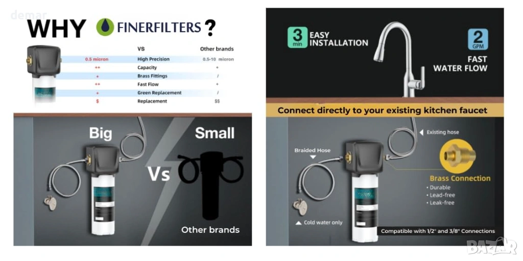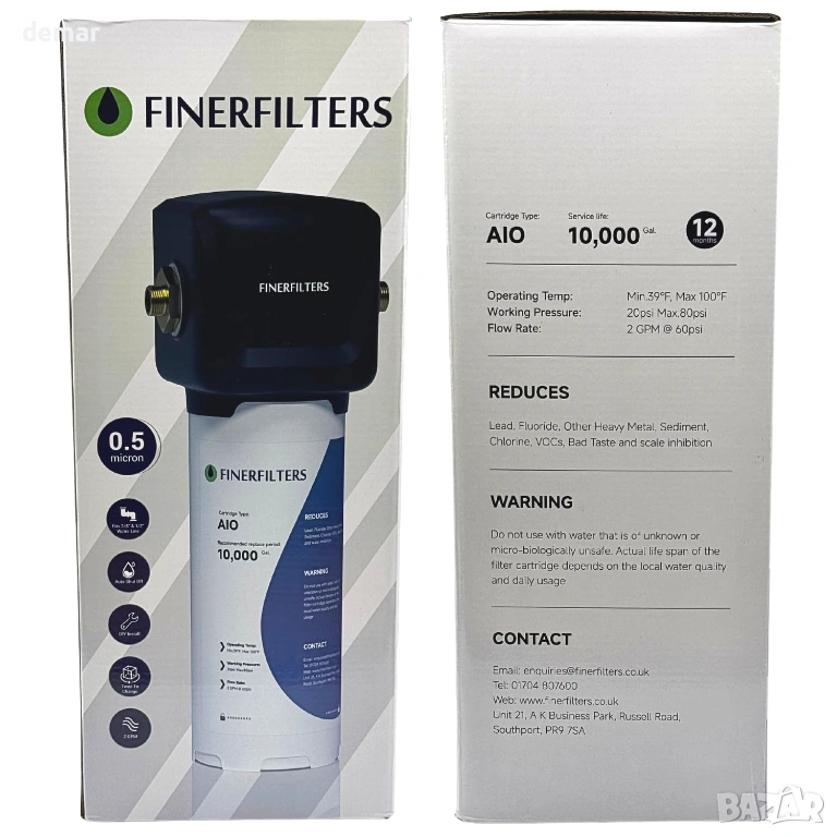 Finerfilters Многофункционална вградена филтърна система за вода, въглероден блок от 0,5 микрона