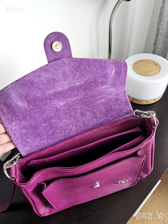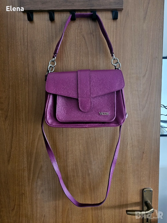 Нова дамска чанта от естествена кожа тъмна фуксия към лилаво.не е ползвана.размери 29/21/14