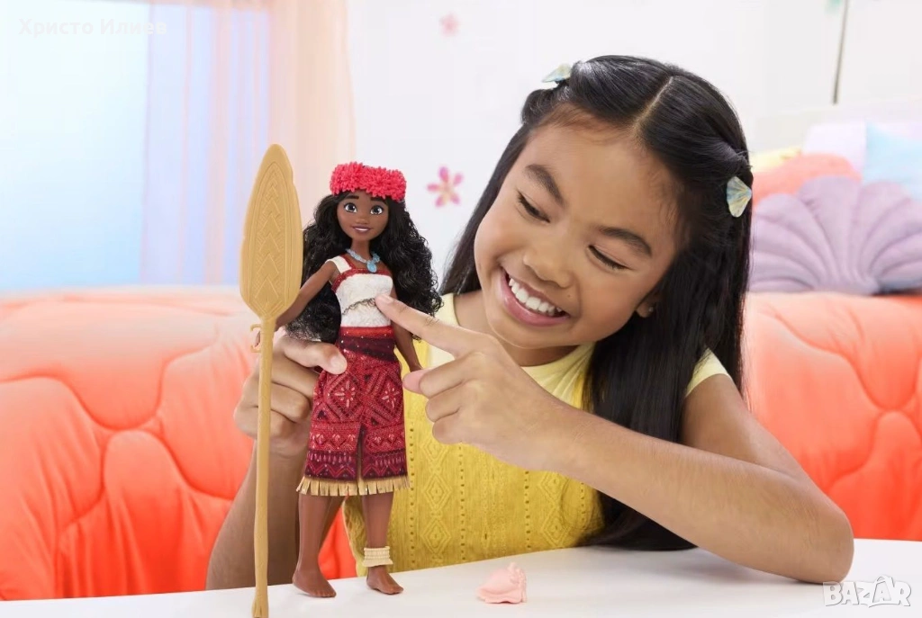 Потопете се в магията на „Ваяна 2“ с тази невероятна пееща кукла от Disney Princess, създадена за всички малки откриватели и почитатели на смелата принцеса. С натискане на тялото куклата изпълнява откъс от песента „We're Back“ на английски език. Тя също разполага с подвижни ръце, крака и глава, така че децата могат да я поставят в различни пози и да си представят епични пътешествия по суша и море. Ваяна е облечена в своя костюм от филма, а красивите ѝ вълнисти коси и характерните аксесоари я правят впечатляващо автентична.