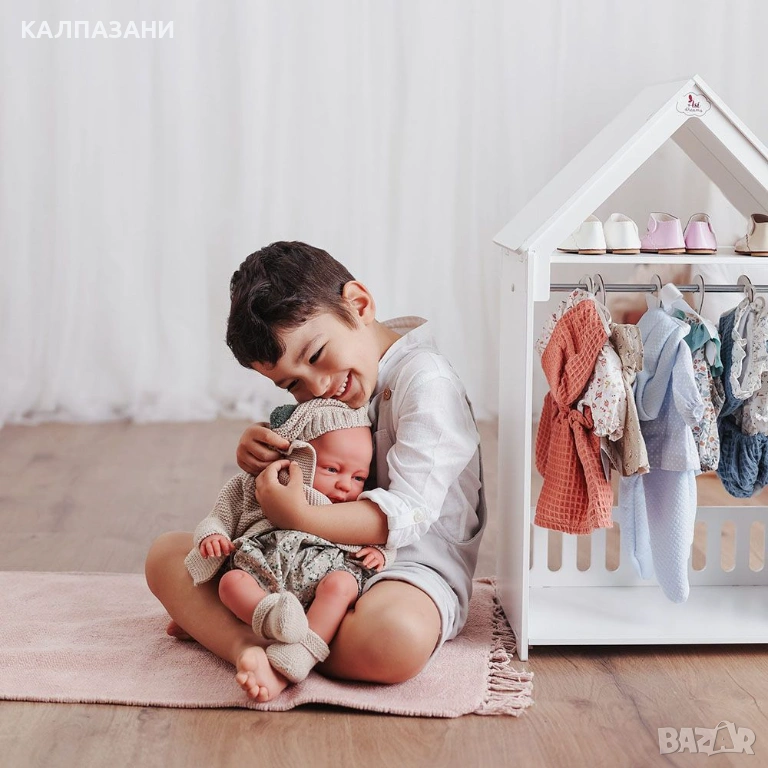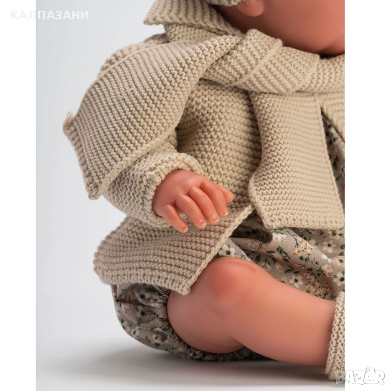 Едно запомнящо се първо приятелче в живота на вашето дете. Създадено с усещане за гладка и зачервена кожа, и добре оформени нокти. Той е с искрящи сини очички с дълги мигли и ръчно изрисувани вежди. Кукличката е без косичка. Неговите малки и червени устни и румени бузки са съвсем като на истинско новородено.